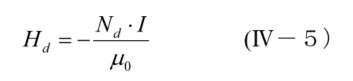 この H0 を反磁界 Hd とします。つまり、反磁界 Hd は、材料から外に出る磁束を保持するために必要な外部空間専用の磁界なのです。したがって、材料の磁化を保持するための材料本来の Hi(閉磁路の磁界)は